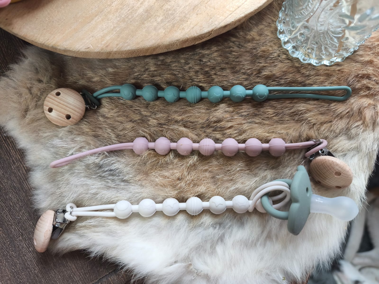👶 Toujours à portée de main : la tétine reste accrochée avec sa finition bambou, fini les pertes ou les chutes au sol.